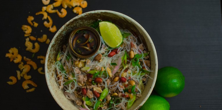 Crispy pork or turkey with a spicy glass noodle salad